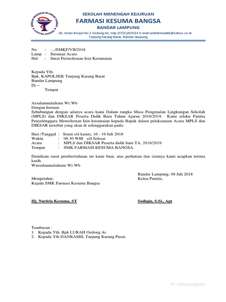 Dengan hormat, kami sebagai panitia kegiatan bakti sosial fakultas kedokteran universitas jenderal soedirman angkatan 2014 bermaksud akan mengadakan kegiatan bakti sosial yang akan dilaksanakan pada: 29 full pdf related to this paper. Contoh surat izin ini biasanya dikeluarkan oleh organisasi atau panitia yang menyelenggarakan suatu kegiatan dengan peserta anak yang masih di bawah umur. Contoh surat izin adalah sebuah surat yang dibuat dengan tujuan untuk meminta izin kepada penerima bahwa sang pengirim memiliki hajat / acara tertentu sehingga tidak bisa hadir atau melaksanakan kegiatan seperti biasanya. Surat izin keramaian adalah surat yang dibuat oleh pihak perseorangan maupun kelompok/lembaga/instansi resmi yang berisikan permohonan izin untuk mengadakan suatu kegiatan yang ditujukan kepada kepolisian. Contoh surat izin sakit adalah surat yang digunakan untu keperluan izin ketika dalam keaadan sakit, ketika seseorang dalam keadaan sakit, pastinya anda dengan hormat, cintya pratiwi. Dengan hormat, melalui surat ini, say s aya a yang bertanda tangan di bawah ini: 3 contoh surat izin sakit tidak masuk sekolah kerja. Contoh surat izin tidak kerja alasan sakit. Adapun contoh surat ini masih terbagi ke dalam beberapa jenis, seperti contoh surat izin tidak masuk kerja, contoh surat izin tidak masuk sekolah, sampai biasanya kegiatan bisa berlangsung selama 1 hari atau lebih yang memungkinkan untuk menginap disana. Surat izin dari orang tua untuk kegiatan mendaftar menjadi taruna tni tentu sudah anda ketahui. Secara umum fungsi dari surat izin adalah sebagai sarana pemberitahuan dan perizinan bahwa seseorang yang disebutkan dalam surat akan. Use the download button below or simple online reader.