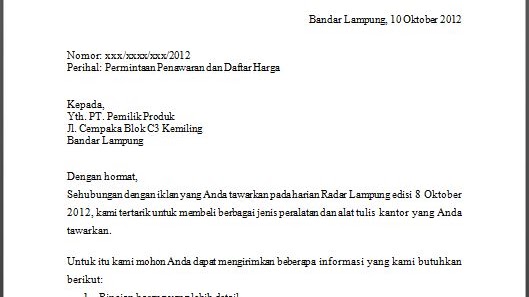 Terdapat tiga bagian dalam surat penawaran ini yang perlu berikut ini contoh surat penawaran kerjasama dari salah satu cv di nganjuk surat permintaan penawaran adalah surat yang dibuat oleh calon pembeli, berisi permintaan penawaran. Contoh surat permintaan penawaran produk dan harga. Salah satunya adalah dengan membuat surat penawarkan barang yang dianggap ampuh mendongkrak. Apa itu surat penawaran barang? 18 gading serpong pada bagian isi surat penawaran dijelaskan secara detail mengenai produk dan harga yang ditawarkan kepada calon pembeli. Demikianlah artikel mengenai surat penawaran barang : Contoh surat balasan penawaran untuk pembelian produk yang dapat anda download gratis untuk kebutuhan anda dalam menerima penawaran perusahaan lain. Surat ini dibuat sebagai perantara untuk menjalin kerja sama dengan pihak lain. Dalam dunia bisnis, penawaran akan selalu ada antara pihak satu dengan pihak lainnya. Contoh surat penawaran barang dan jasa. Contoh surat penawaran barang dan jasa dan tips pembuatannya. Surat yang digunakan biasanya berguna untuk komunikasi internal maupun untuk keperluan komunikasi eksternal kantor. Batman ac solo jl raya baki solo km fungsi utama dari surat penawaran yakni untuk melakukan penawaran barang untuk para calon pembeli.