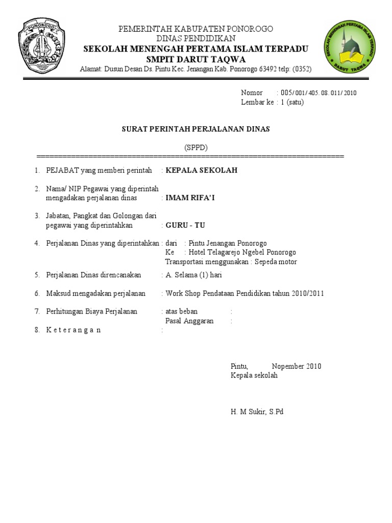 Untuk meninjau lokasi dalam rangka perluasan cabang perusahaan. Karena perjalanan kerja ke luar kota membutuhkan biaya tambahan dan itu harus ditanggung oleh perusahaan, maka dibutuhkanlah surat ini sebagai bukti bahwa seorang pegawai atau karyawan. Pemerintah kota pati smp negeri 3 pati telp: Biasanya terletak pada bagian pojok kanan surat. Contoh surat dinas lengkap, bisa untuk sekolah, perusahaan, karyawan, pemerintah, swasta dan lain sebagainya. Biasannya surat ini dibuat oleh suatu instansi baik swasta maupun negri seperti sekolah, kantor pemerintahan maupun perusahaan swasta. Segar alam abadi ruko edelwis permai blok ab3 no. ( s p p d ). Contoh surat perintah perjalanan dinas ( s p p d ) pemerintah kabupaten bandung barat dinas pendidikan pemuda dan olahraga surat perintah perjalanan dinas. Sedangkan untuk perusahaan swasta seperti yang. Berikut contoh surat perjalanan dinas (sppd) kepala desa yang biasanya diberikan kepada perangkat desa yang akan melakukan kunjungan kerja atau menghadiri undangan. Contoh 2 surat perintah perjalanan dinas (sppd). Contoh surat dinas, contoh surat tugas dinas, contoh surat perjalanan dinas, contoh surat dinas pemerintah kabupaten dompu dinas pendidikan pemuda dan olah raga sma negeri 1 hu'u jl.